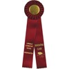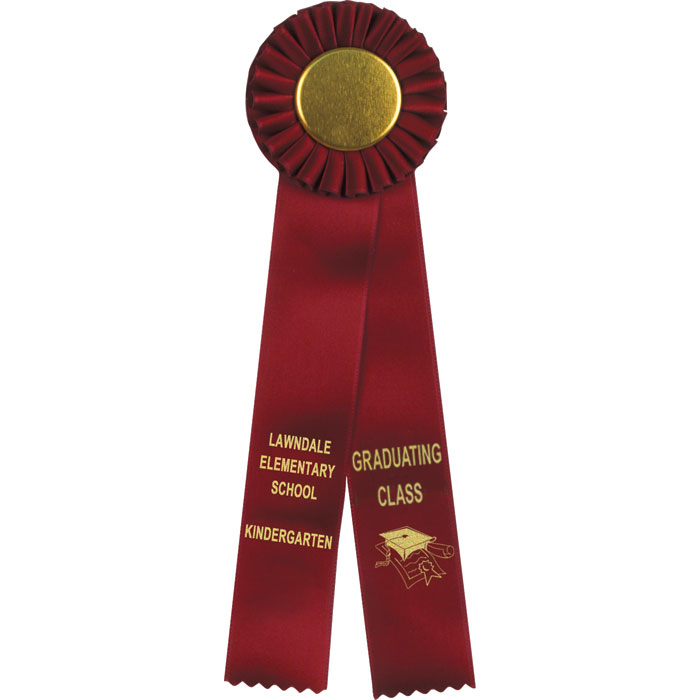 This 3" x 10" Rosette is made of top quality satin. Minimum order without setup charge is 100. Shipped within 8 business days. Standard logos are included for free. Custom logos require a $35.00 die charge.