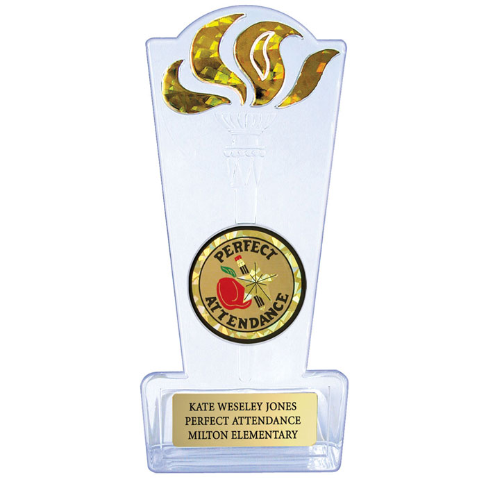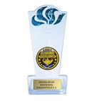 At last- a bright, contemporary trophy at an affordable price! We'll laser printer your wording on gold foil for improved legibility. Shipped within 3 days after receipt of order. Allow additional time for shipping. Order now and get a $.50 discount per item for entering engraving text online! Size: 3.75" x 8.25"