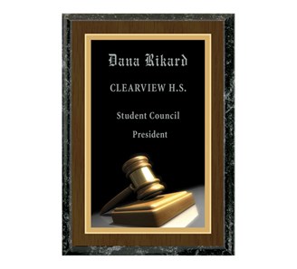 Here is your opportunity to have your engraved wording inscribed on a stunning full color plaque. Each beautiful plate is mounted on a 5" x 7" black marble finished plaque board. Pick one - or many - of the 11 styles available, and we'll combine for quantity discounts. Plate accommodates 4 lines of text. Board features slots for hanging. Ships fully assembled in 3 days. Order now and get a $.50 discount per item for entering engraving text online!