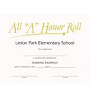 These gorgeous certificates are stamped in gold foil on a special "smart white" 11" x 8.5" text-weight paper that you can use in your laser printer. Ships in 4 days. Add a FREE standard logo. See free logo options below.