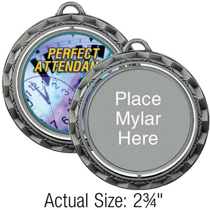 Versatile thanks to our enormous selection of mylars in academic, athletic, activity and other titles. The center of this heavy 2.75" cast medal rotates to show off two different mylars! Price includes the two 2" mylars, shipped unattached. Ships within 24 hours. Sorry, this item cannot be engraved.