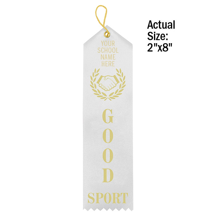 Personalize our premium stock ribbons with your school's name in gold foil. Use the standard ribbon color shown here or pick your color. Minimum order without $20.00 setup charge is 100. Ships within 5 business days. Quantity discount applies to total of Personalized Ribbons. Ribbons are 2" x 8".