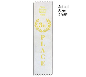 Personalize our premium stock ribbons with your school's name in gold foil. Use the standard ribbon color shown here or pick your color. Minimum order without $20.00 setup charge is 100. Ships within 5 business days. Quantity discount applies to total of Personalized Ribbons. Ribbons are 2" x 8".