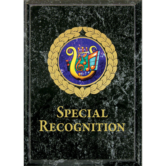 These quick, inexpensive plaques feature gold foil on marble finish and come with your choice of mylar. Ship within 24 hours! Allow additional time for shipping. Please provide quantity and item number and Mylar number.