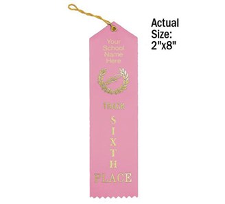 Personalize our premium stock ribbons with your school's name in gold foil. Use the standard ribbon color shown here or pick your color. Minimum order without $20.00 setup charge is 100. Ships within 5 business days. Quantity discount applies to total of Personalized Ribbons. Ribbons are 2" x 8".
