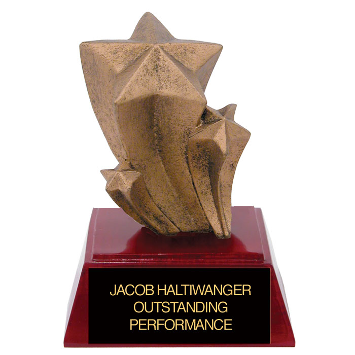 Our most distinguished trophy makes a unique impression for special occasions. Three free lines of engraving with 24 characters and spaces per line. Shipped within 3 days after receipt of order. Please allow additional time for shipping. Order now and get a $.50 discount per item for entering engraving text online! Size: 2.75" x 4"
