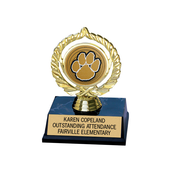 This is a traditional trophy at a competitive price. And you've got options so that this award can always be exactly what you need - choose the mylar and engraving for the plate. We need just 3 business days as with all our engraving to produce this award to your specifications. Free engraving includes 3 lines of 30 characters. Order now and get a $.50 discount per item for entering engraving text online! Size: 3" x 5"