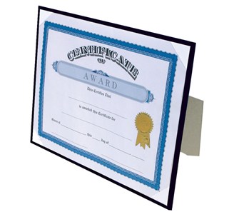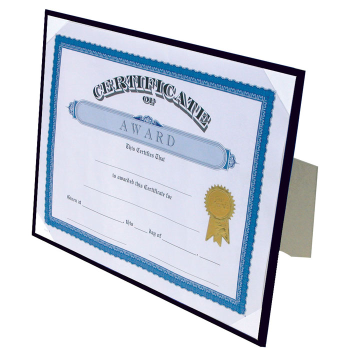 This sleek design complements your award and completes the look of your presentation. Satin ribbon corners hold one 8.5" x 11" document vertically or horizontally. Colors may be combined for quantity discounts. Shipped within 24 hours. Backs are die cut to stand alone or hang vertically or horizontally. Includes an acetate film to protect document.