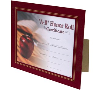 A terrific way to present and preserve certificates. These frames give you the look of leather without the expense. Holds one 8.5" x 11" document vertically or horizontally. Available in black, blue, navy, maroon, red, green and woodgrain. Colors may be combined for quantity discounts. Shipped within 24 hours. Backs are die-cut to stand alone or hang.