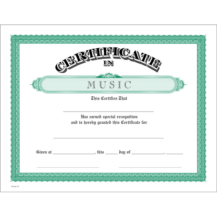 Music Green Jones Classic Certificate