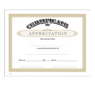 Our original, classic design is still our most popular. This traditional look on a true certificate-quality text-weight cotton bond paper is available in four border colors. These 8.5" x 11" certificates are to be used horizontally. Shipped within 24 hours. Titles and colors can be combined for quantity discounts.