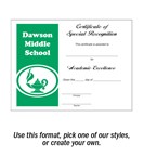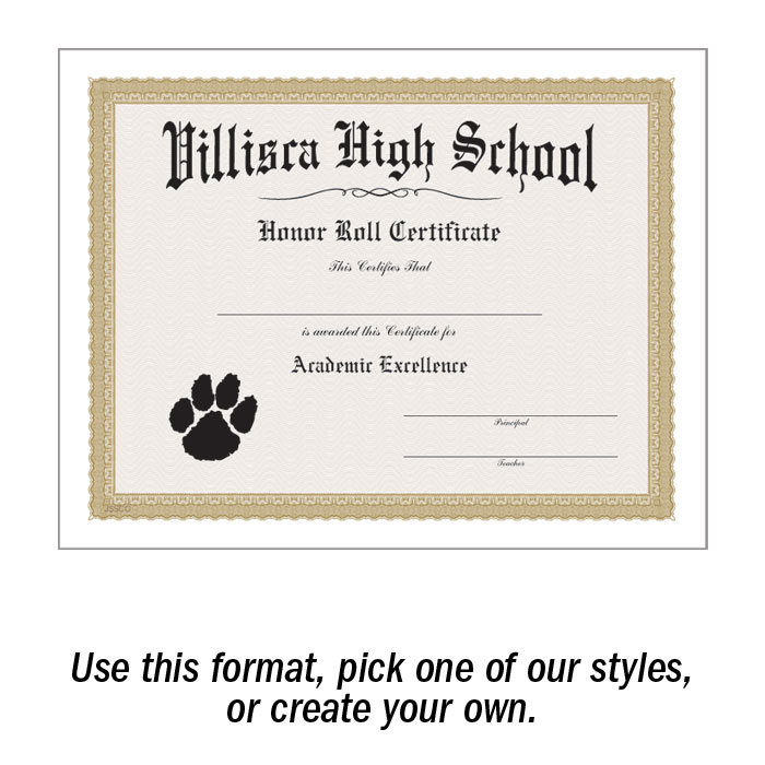 Create your own 8.5" x 11" traditional certificate! This traditional border is the starting point for designing your own certificates. Now , getting a unique look for your school couldn't be easier. Pick your paper, pick your layout and provide details! Minimum order of 50. Ships in 4-7 days.