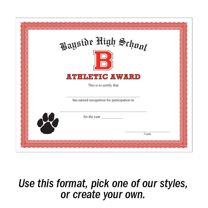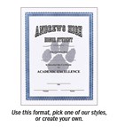 Create your own 8.5" x 11" traditional certificate! This traditional border is the starting point for designing your own certificates. Now , getting a unique look for your school couldn't be easier. Pick your paper, pick your layout and provide details! Minimum order of 50. Ships in 4-7 days.