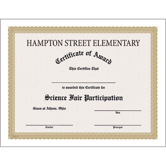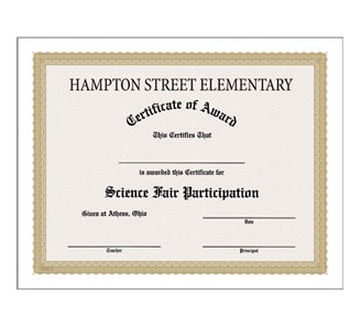 The arc of the title on these certificates is a timeless design. Features a printed border with background on a 8.5" x 11" coated heavyboard paper. Minimum order of 50. Shipped within 4 days of order.