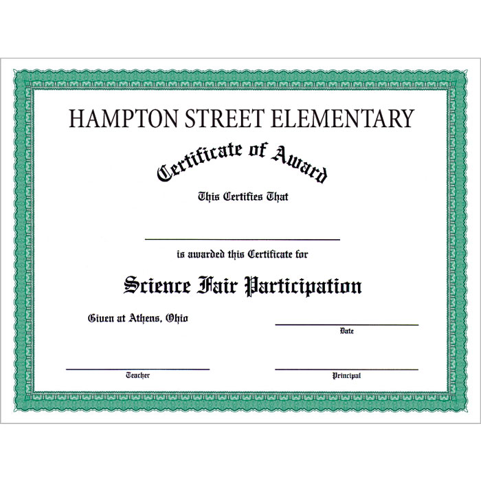 Green Border on White Parchtone Custom Certificate