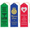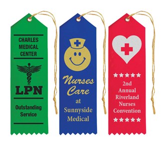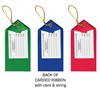 Choose the wording, layout, ribbon color and logo for your small carded custom premium satin ribbon. Size is 1.625" x 6". Shipped within 5 business days. Standard logos are foil stamped for free. Custom logos require a $35.00 die charge.