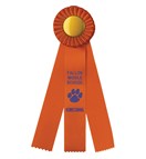 This 3" x 10" Rosette is made of top quality satin. Minimum order without setup charge is 100. Shipped within 8 business days. Standard logos are included for free. Custom logos require a $35.00 die charge.