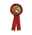 These Colorful rosettes accommodate any of our mylar titles. They are 6.5" x 3.25" with a safety pin back. Combine titles and colors for quantity discounts. Price includes mylar, shipped unattached. Items in stock ship within 24 hours. SAME DAY SHIPPING on stock orders placed before 3pm EST!