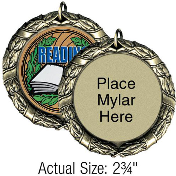 Our most versatile medal thanks to our enormous selection of mylars in academic, athletic, activity and other titles. Get eye-catching color and a heavy, 2.75" cast medal together! Price includes the 2" mylar, shipped unattached. Ships within 24 hours. Laser and Traditionally engraved medals ship within 3 days.