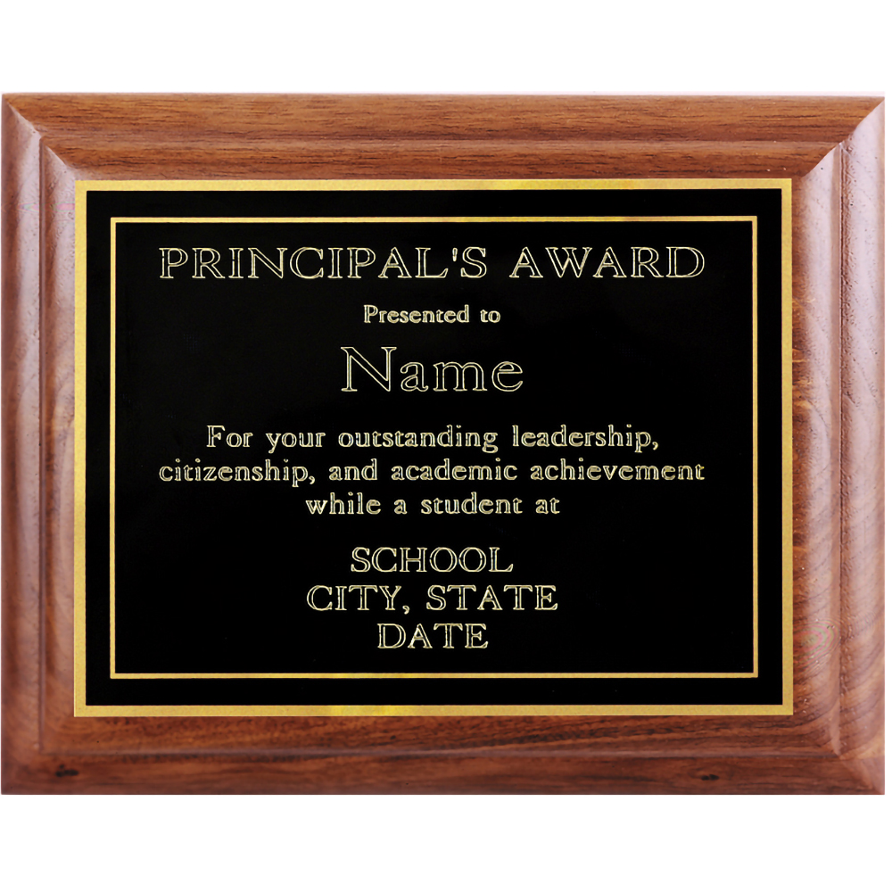 Our most elegant plaque is made from a full sheet of real black brass engraved to reveal the gold color beneath. This 8" x 10" plaque is made from solid, genuine walnut. Any recipient will be honored to receive this substantial, beautifully hand-made award. As with all our plaques, the engraving is included in the price. Shipped within 3 business days. Order now and get a $.50 discount per item for entering engraving text online!