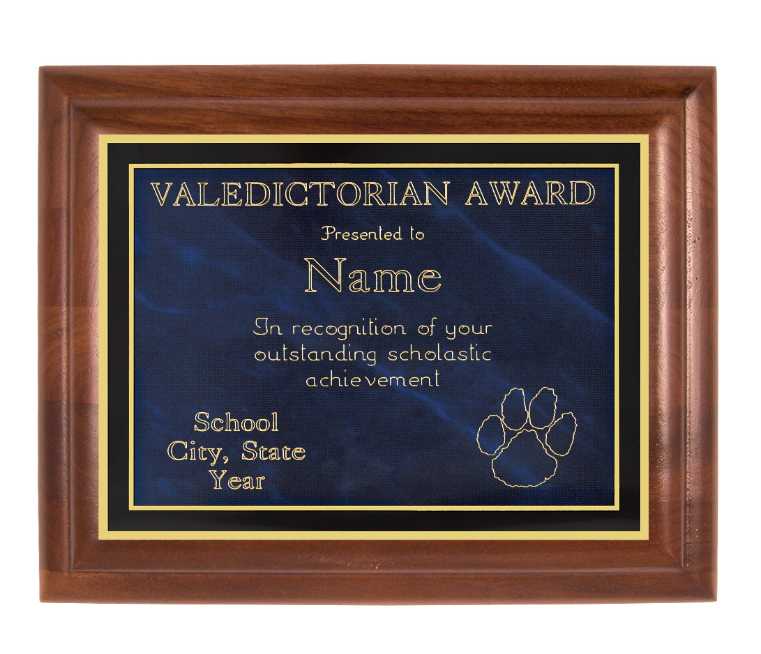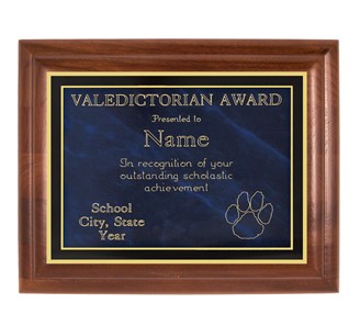 Our most elegant plaque is made from a full sheet of real blue brass engraved to reveal the gold color beneath. This 8" x 10" plaque is made from solid, genuine walnut. Any recipient will be honored to receive this substantial, beautifully hand-made award. As with all our plaques, the engraving is included in the price. Shipped within 3 business days. Order now and get a $.50 discount per item for entering engraving text online!