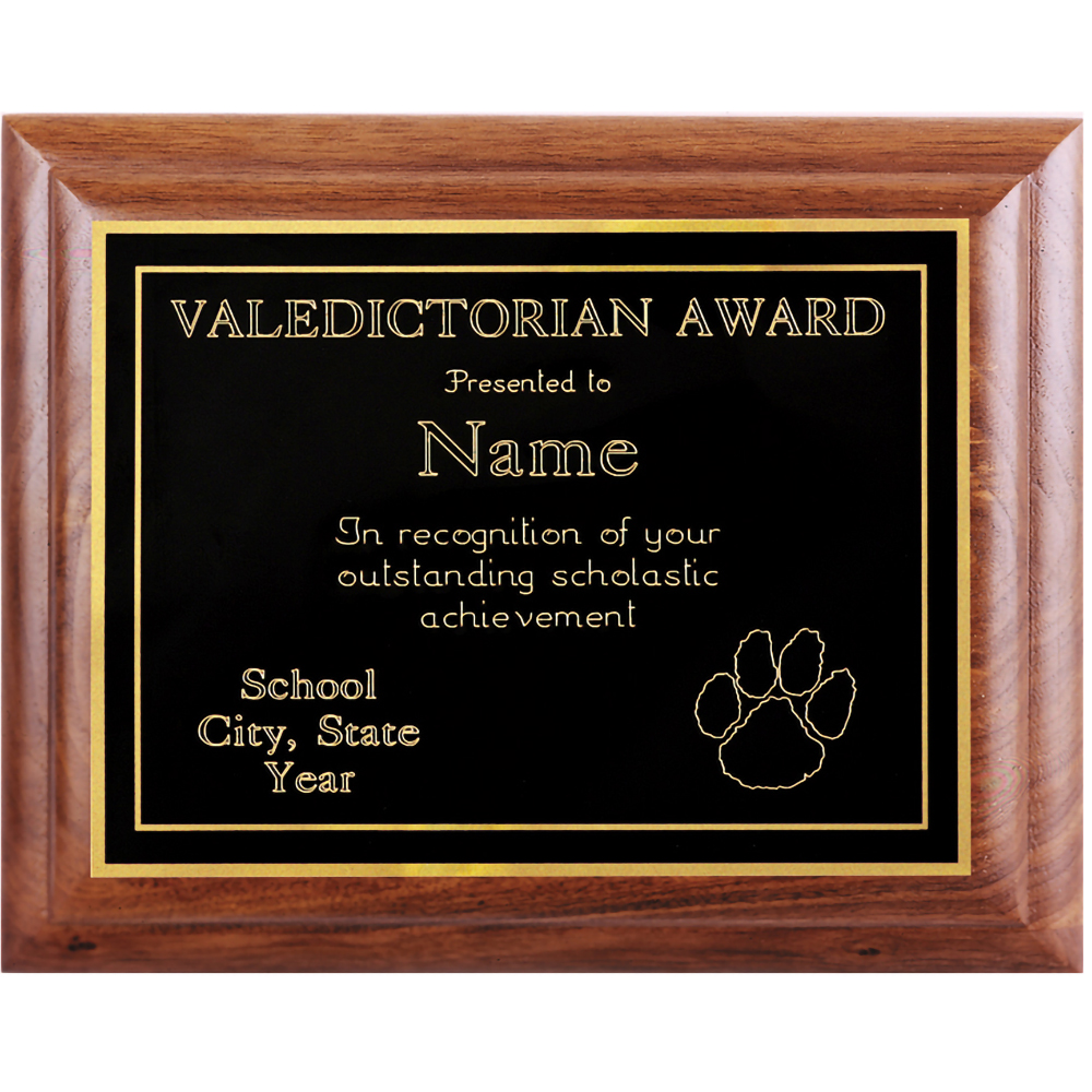 Our most elegant plaque is made from a full sheet of real black brass engraved to reveal the gold color beneath. This 8" x 10" plaque is made from solid, genuine walnut. Any recipient will be honored to receive this substantial, beautifully hand-made award. As with all our plaques, the engraving is included in the price. Shipped within 3 business days. Order now and get a $.50 discount per item for entering engraving text online!