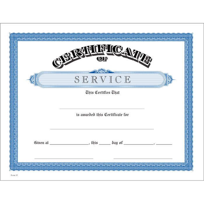 Service Blue Jones Classic Certificate