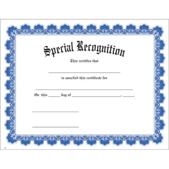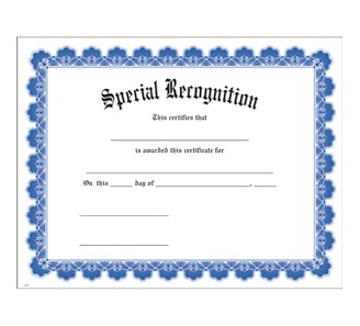 Special Recognition Blue Ultra White Certificate