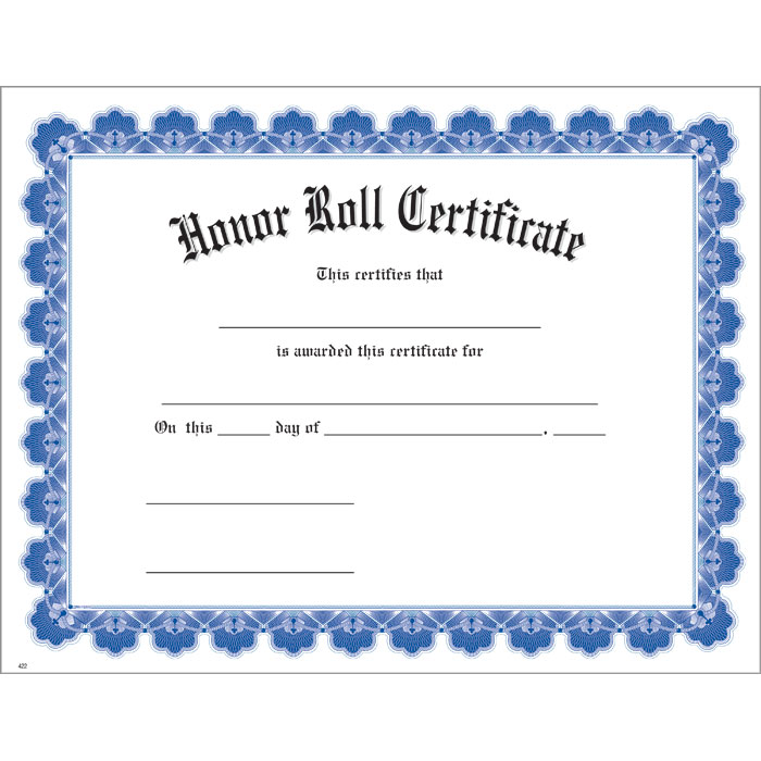 Honor Roll Blue Ultra White Certificate