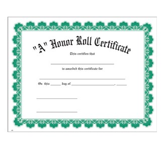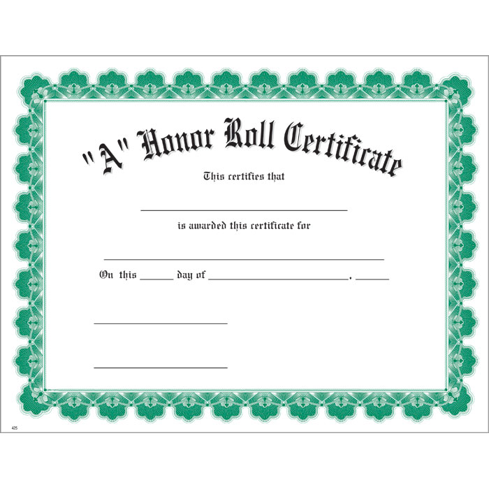 A Honor Roll Green Ultra White Certificate
