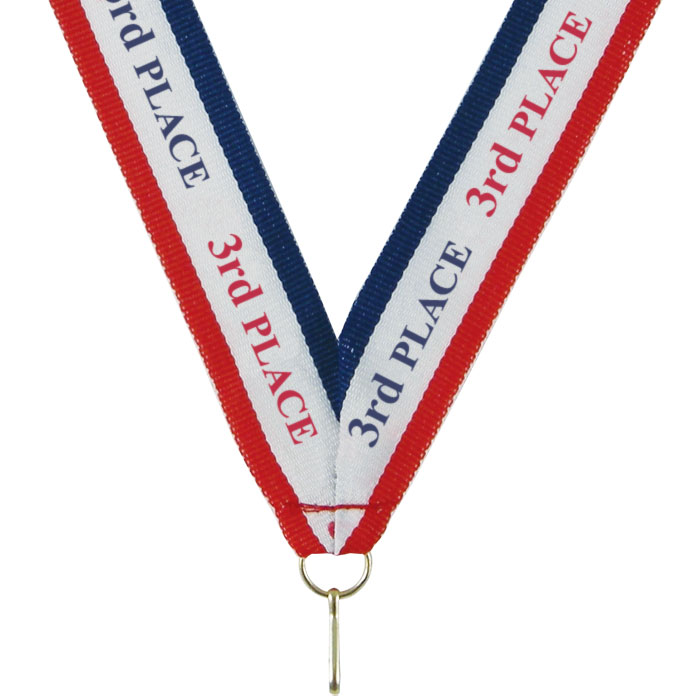 Our No. 5002 Neck ribbons are .875" x 30" and feature a sewn in ring or clip for medal attachment. They are recommended for use with 1.25", 1.5", and 2" medals. Colors may be combined for quantity discounts. Shipped within 24 hours. Medals sold separately and shipped unattached. SAME DAY SHIPPING on stock orders placed before 3pm EST!