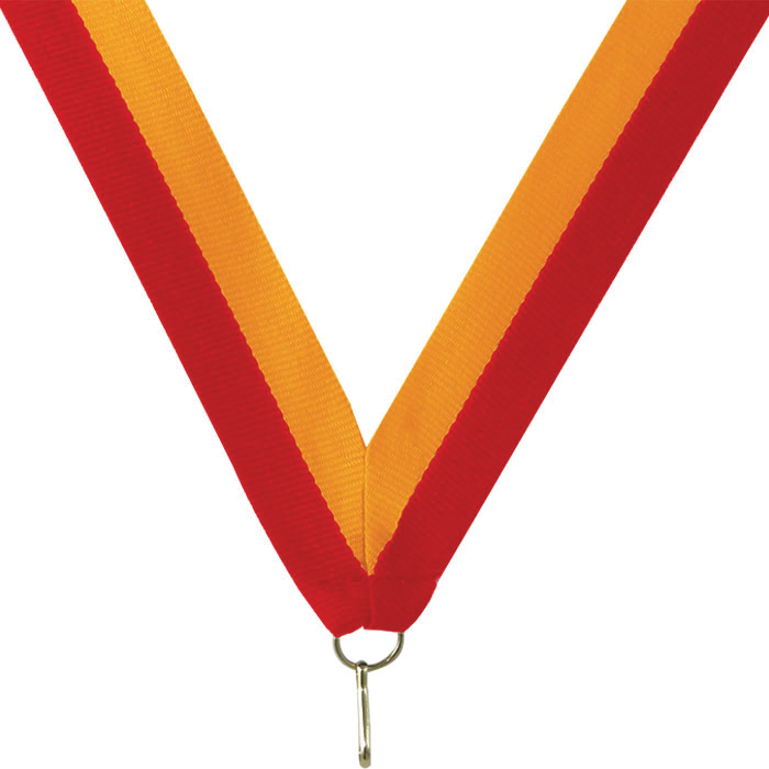 Our No. 5002 Neck ribbons are .875" x 30" and feature a sewn in ring or clip for medal attachment. They are recommended for use with 1.25", 1.5", and 2" medals. Colors may be combined for quantity discounts. Shipped within 24 hours. Medals sold separately and shipped unattached. SAME DAY SHIPPING on stock orders placed before 3pm EST!