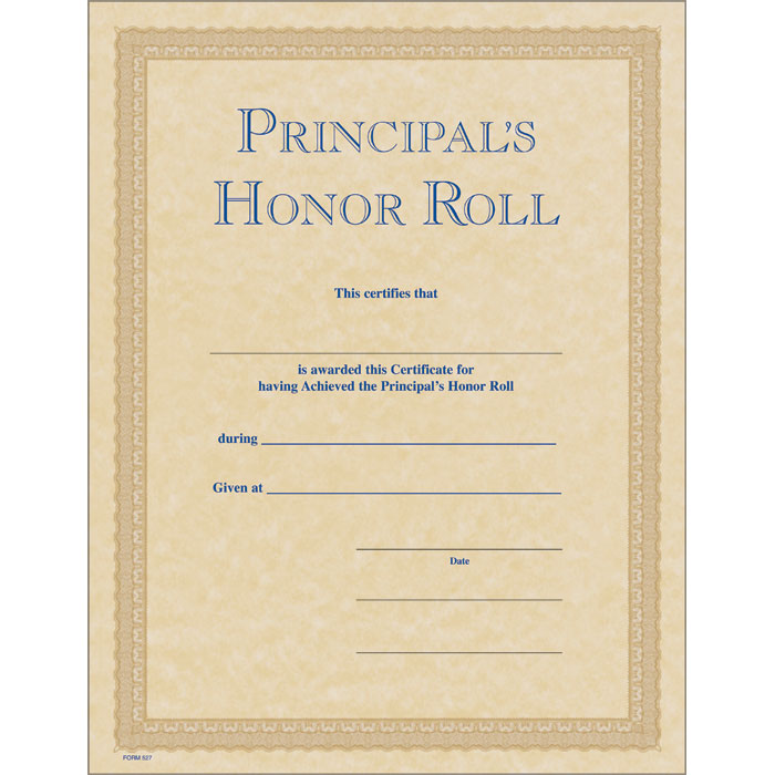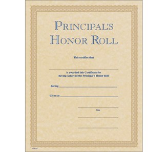 Principal's Honor Roll Gold Border Beige Parchtone Certificate