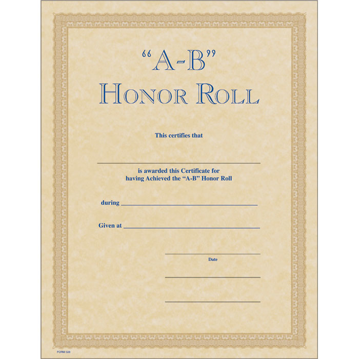 AB Honor Roll Gold Border Beige Parchtone Certificate