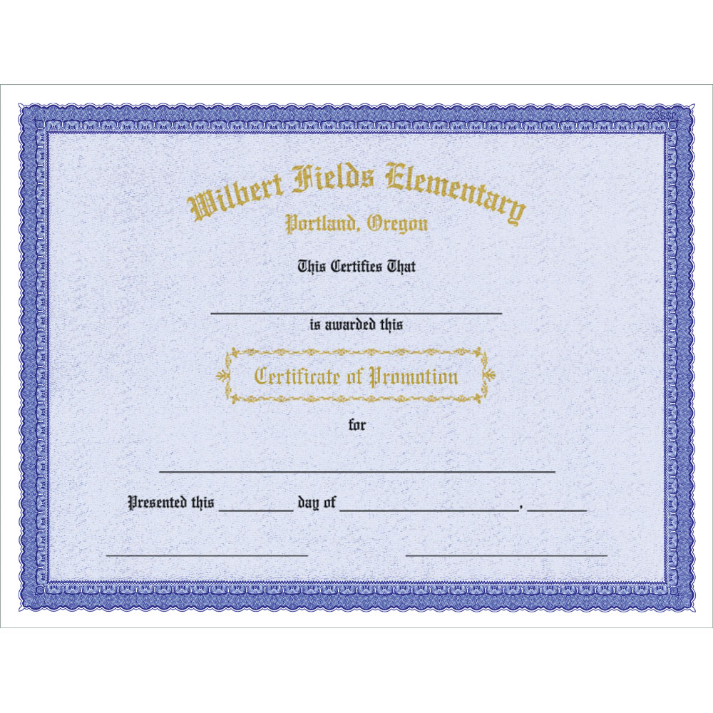 Imprint your school's name in the luminous foil color of your choice! Then choose whether you would like the city and state or one of our standard logos stamped under the school name. This 11" x 8.5" certificate comes in a variety of border colors, award titles, and paper types. You can select one of our parchtone text weight borders or our coated heavyboard papers with border and matching background. $50.00 one time die charge for first orders. Award titles may be combined for quantity discounts. Shipped within 6 business days. Your first order requires one extra week. Minimum order of 100.
