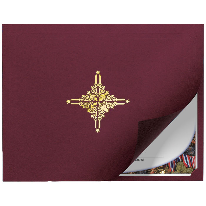 These heavyweight linen Presentation Folders have die cut corners to hold your document vertically or horizontally. Holds one 8.5" x 11" or 8" x 10" document. Center design is hot-stamped in gold foil. Colors may be combined for quantity discounts. Items in stock shipped within 24 hours.