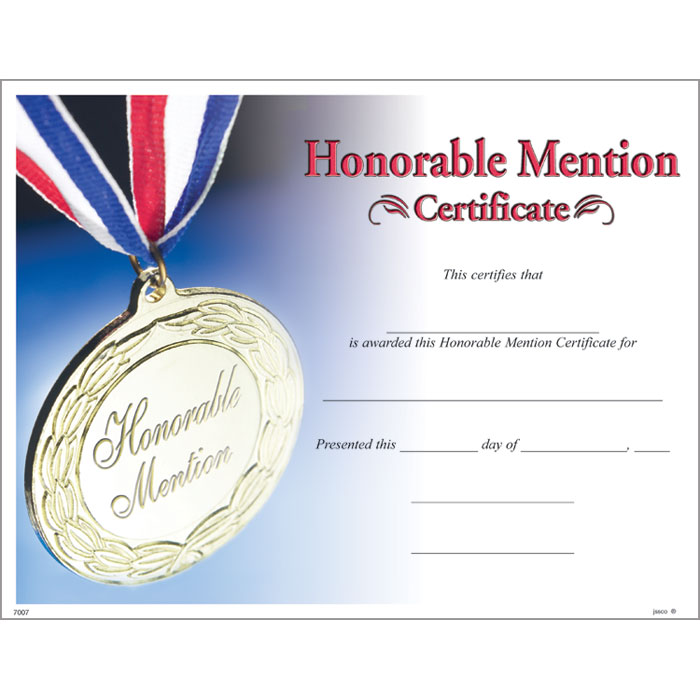 Honorable Mention Certificate