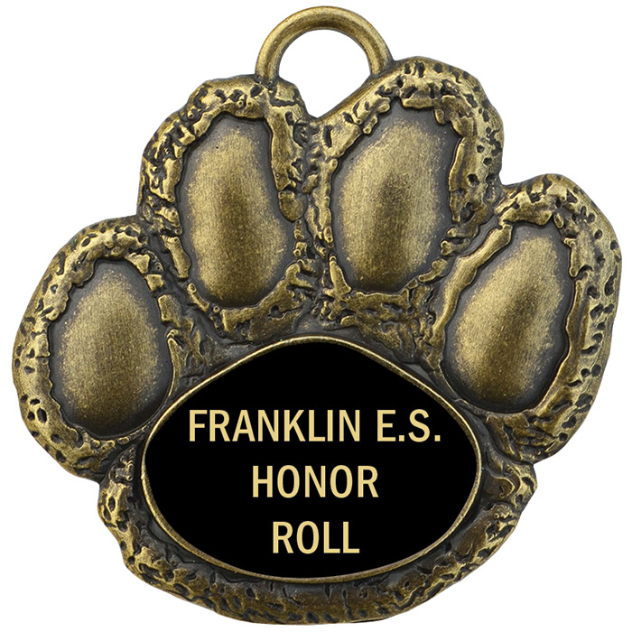 Add the perfect wording to the front of your medal. This 2" antique gold medal is designed to accommodate a laser engraved plate on front. Looks perfect with our 5002 neck ribbon. Three free lines of personalization. Maximum 12 characters per line. Shipped fully assembled within 3 days after receipt of order. Allow additional time for shipping.