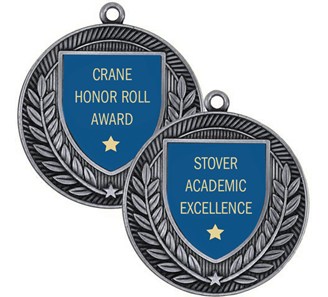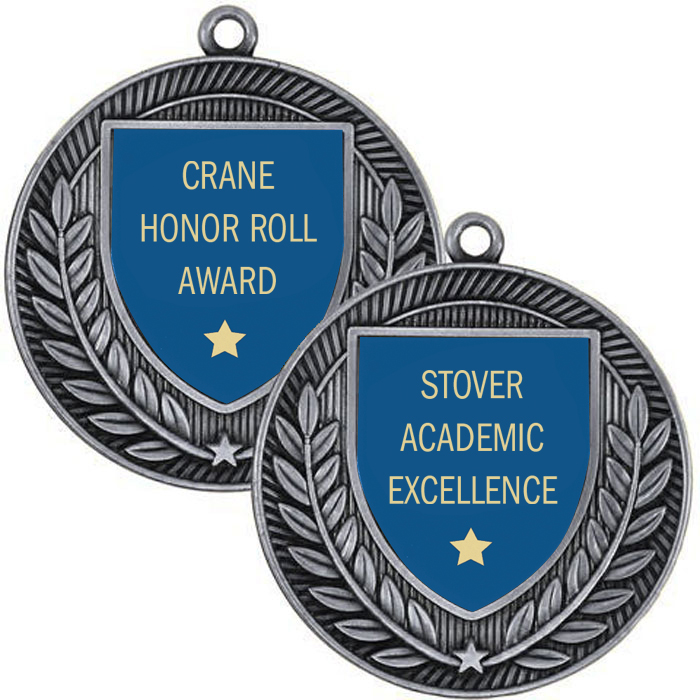 Add the perfect wording to the front of your medal. This 2" antique silver medal is designed to accommodate a laser engraved plate on front. Looks perfect with our 5002 neck ribbon. Three free lines of personalization. Maximum 12 characters per line. Shipped fully assembled within 3 days after receipt of order. Allow additional time for shipping.