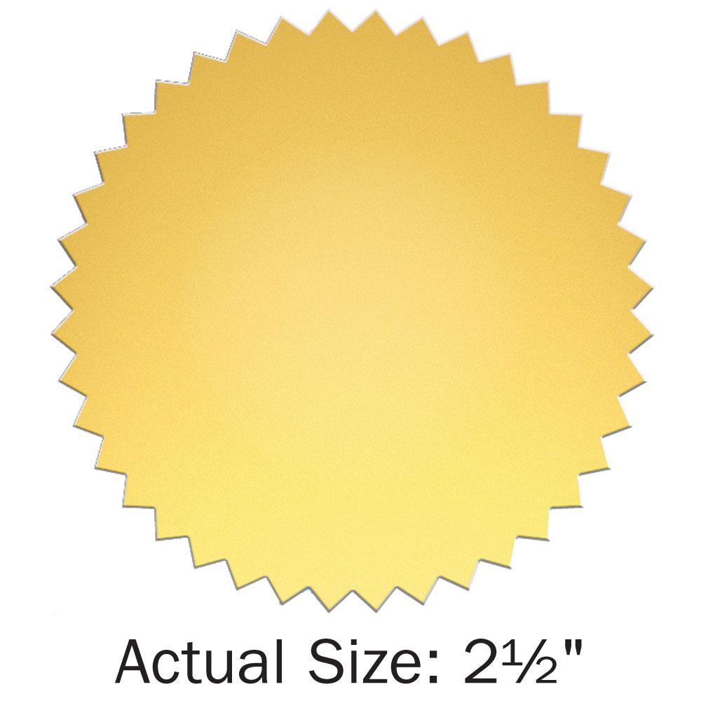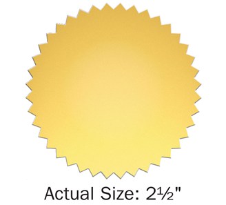 This larger 2.5 self adhesive foil seal can be used to provide a distinguished and professional appearance for certificates. Suitable for use with embossers. Sold in multiples of 10 per color. Shipped within 24 hours.