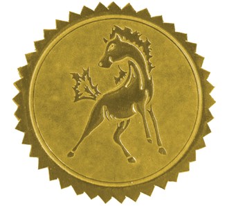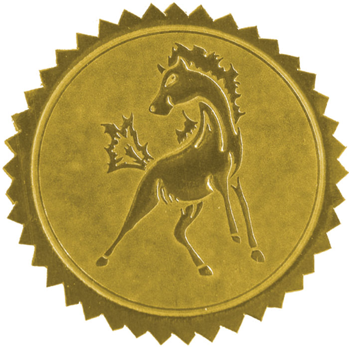 These classic gold foil seals are deeply embossed and have pressure-sensitive backing for easy application. Sold in multiples of 10 per title. Items in stock can be shipped within 24 hours after receipt of order. Allow additional time for shipping.