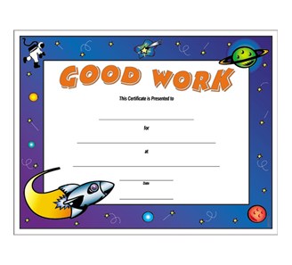 Cheerful colors and eye-catching designs have made this line of certificates a big hit. They are a full 11" x 8.5" on white text weight paper. This line ships within 24 hours. Combine your titles for discounts. SAME DAY SHIPPING on stock orders placed before 3pm EST!
