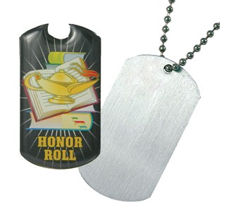This fun, yet versatile award lets you choose the perfect full color insert to meet your award needs. Each 2" x 1.125" aluminum Award Tag ships with a self-adhesive, domed insert. A 24" chain is included so that your students can wear their awards with pride. Titles may be combined for quantity discount. Shipped unattached within 24 hours.