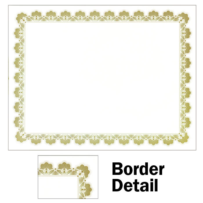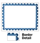 Why settle for ordinary paper when our top-quality papers can make a tremendous difference in your presentation for just a few cents per award? At these prices our paper is a better deal than operating most color laser printers. Ship in 24 hours. This 8.5" x 11" border can be used horizontally or vertically. Features our popular scalloped border printed on ultra white text weight paper. Available in 5 colors.