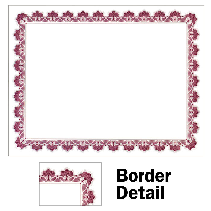 Why settle for ordinary paper when our top-quality papers can make a tremendous difference in your presentation for just a few cents per award? At these prices our paper is a better deal than operating most color laser printers. Ship in 24 hours. This 8.5" x 11" border can be used horizontally or vertically. Features our popular scalloped border printed on ultra white text weight paper. Available in 5 colors.