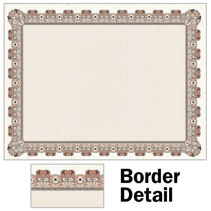 This 8.5" x 11" border features a two color border on laser-printable text-weight paper. The natural beauty of this eggshell white paper shows the paper fibers accented with a complimentary metallic screened background. Available in 5 color combinations. Ships within 24 hours. SAME DAY SHIPPING on stock orders placed before 3pm EST!
