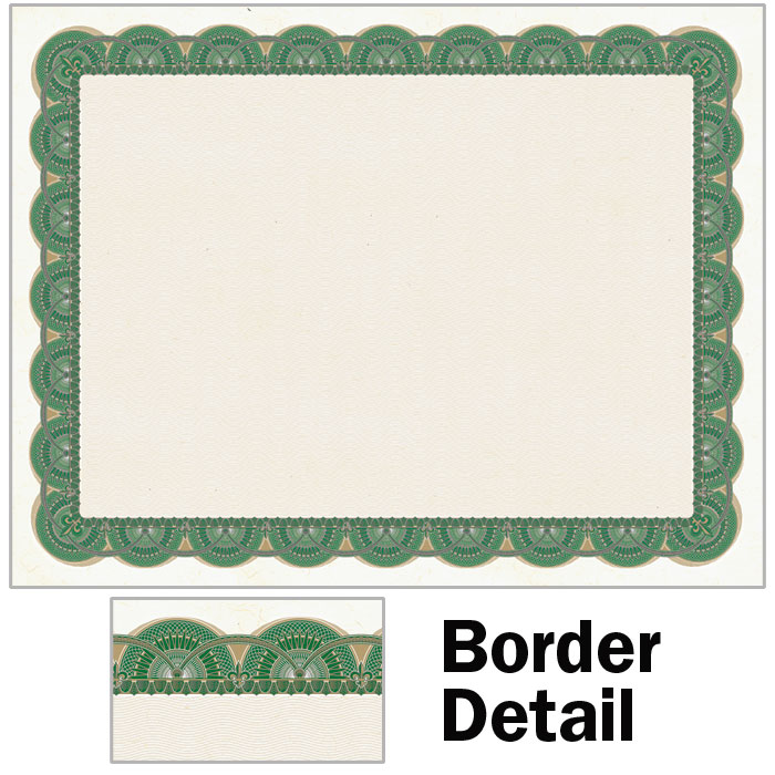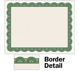 This 8.5" x 11" border features a two color border on laser-printable text-weight paper. The natural beauty of this eggshell white paper shows the paper fibers accented with a complimentary metallic screened background. Available in 5 color combinations. Ships within 24 hours. SAME DAY SHIPPING on stock orders placed before 3pm EST!