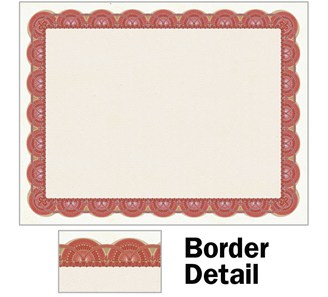 This 8.5" x 11" border features a two color border on laser-printable text-weight paper. The natural beauty of this eggshell white paper shows the paper fibers accented with a complimentary metallic screened background. Available in 5 color combinations. Ships within 24 hours. SAME DAY SHIPPING on stock orders placed before 3pm EST!