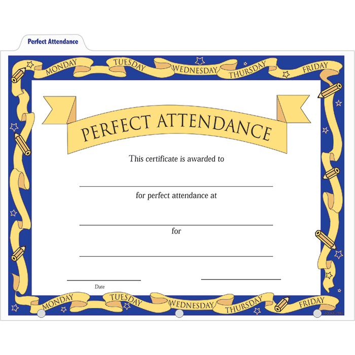 Perfect Attendance Binder Certificate