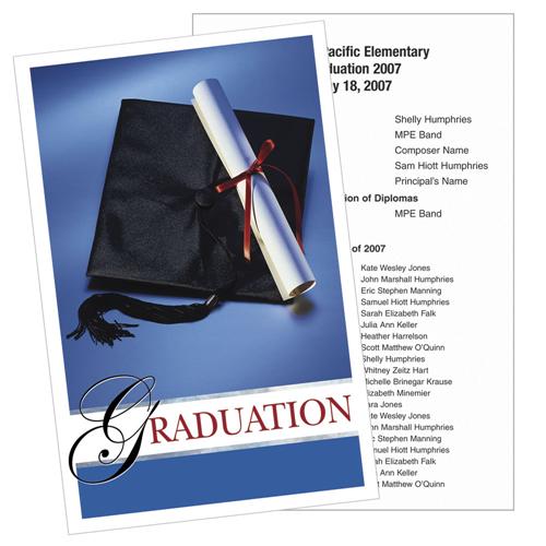 Make graduation truly special with our pre-printed program covers. The 8.5" x 11" programs are shipped flat so that you can easily print your program information inside with your laser printer or photo copier. Ships within 24 hours.